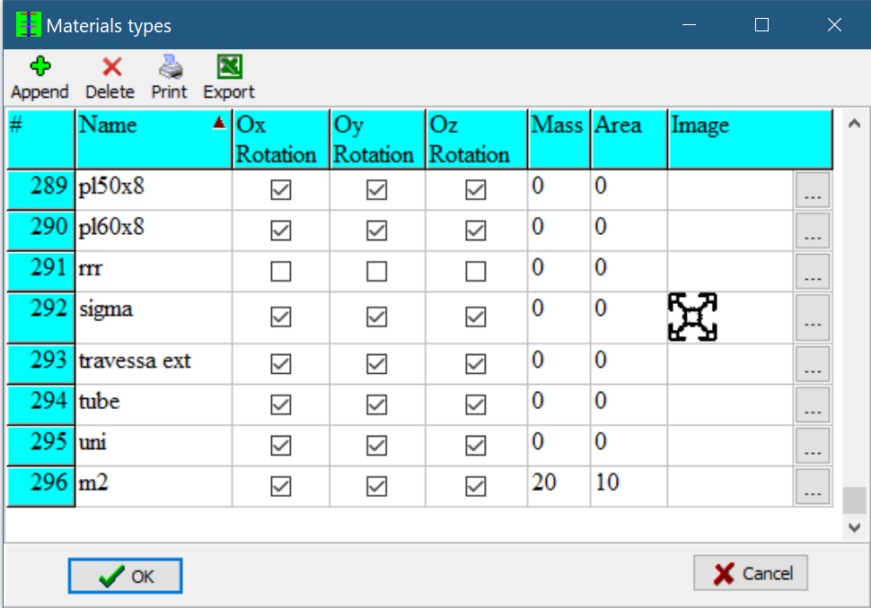 Introduces weight and area for materials. Values are per unit-length of material.